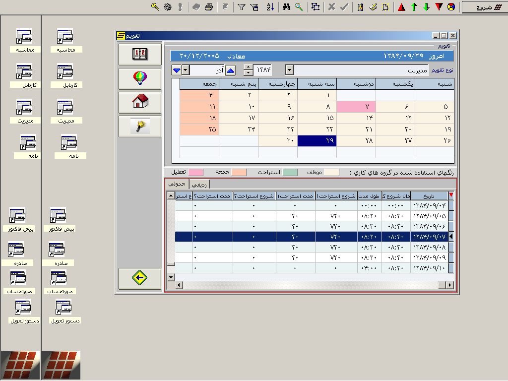 برخی امکانات نرم افزار سیستم تقویم